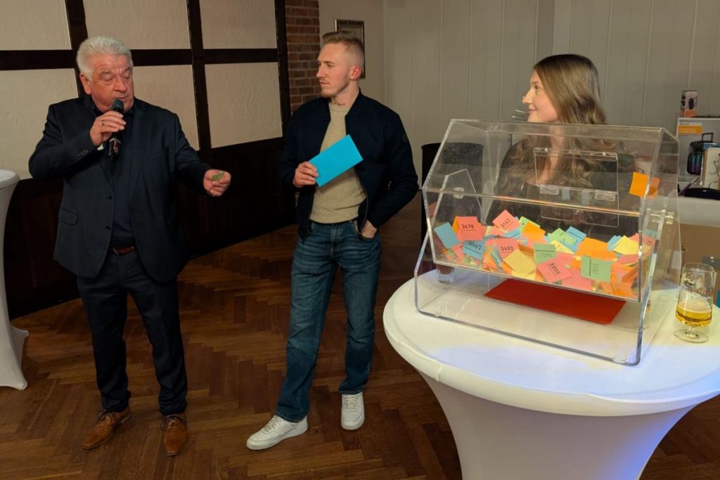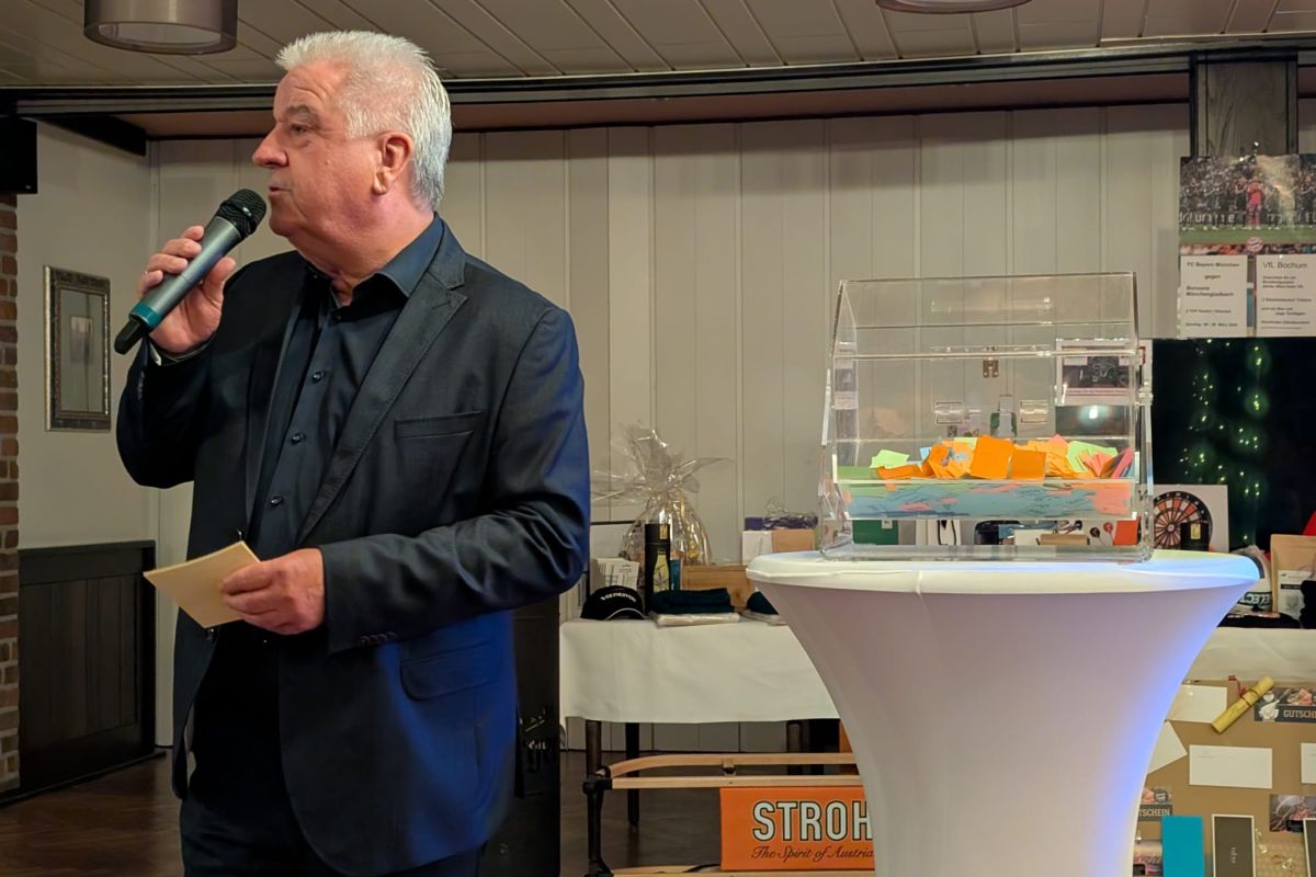 Die Veranstaltung begann mit der Begrüßungsrede des Vorstandsvorsitzenden Michael Kühn. Der Eingangsansprache folgte die bunte Tombola, für die alle Gäste zuvor die Möglichkeit hatten verschiedene Losnummern/-farben zu erwerben. Als Hauptpreise waren neben einem modernen Flachbildfernseher auch Tribühnenkarten der Fußball-Bundesliga dabei. Zum einen für das Spiel des Bayern München gegen Borussia Mönchengladbach und zum anderen für eine Begegnung des VfL Bochum gegen einen Gegner nach Wahl in Absprache mit Jupp Tenhagen. Außerdem war eine Wochenendnutzung für ein neues Fahrzeug von Audi unter den Preisen. Weitere Freude hatten beispielsweise die Gewinner der Mützen von Günter Wardthuysen und Studio-46, die auf den nachfolgenden Bildern zu sehen sind.
