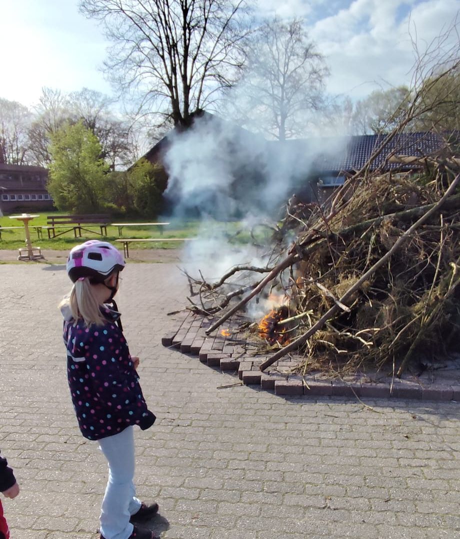Entzündet wurde das diesjährige Feuer überpünktlich von einigen Kommunionskindern mit einer Flamme, die von der Praester Osterkerze geholt wurde. Eine schöne Zusammenarbeit zwischen Sportverein und Kirchengemeinde.